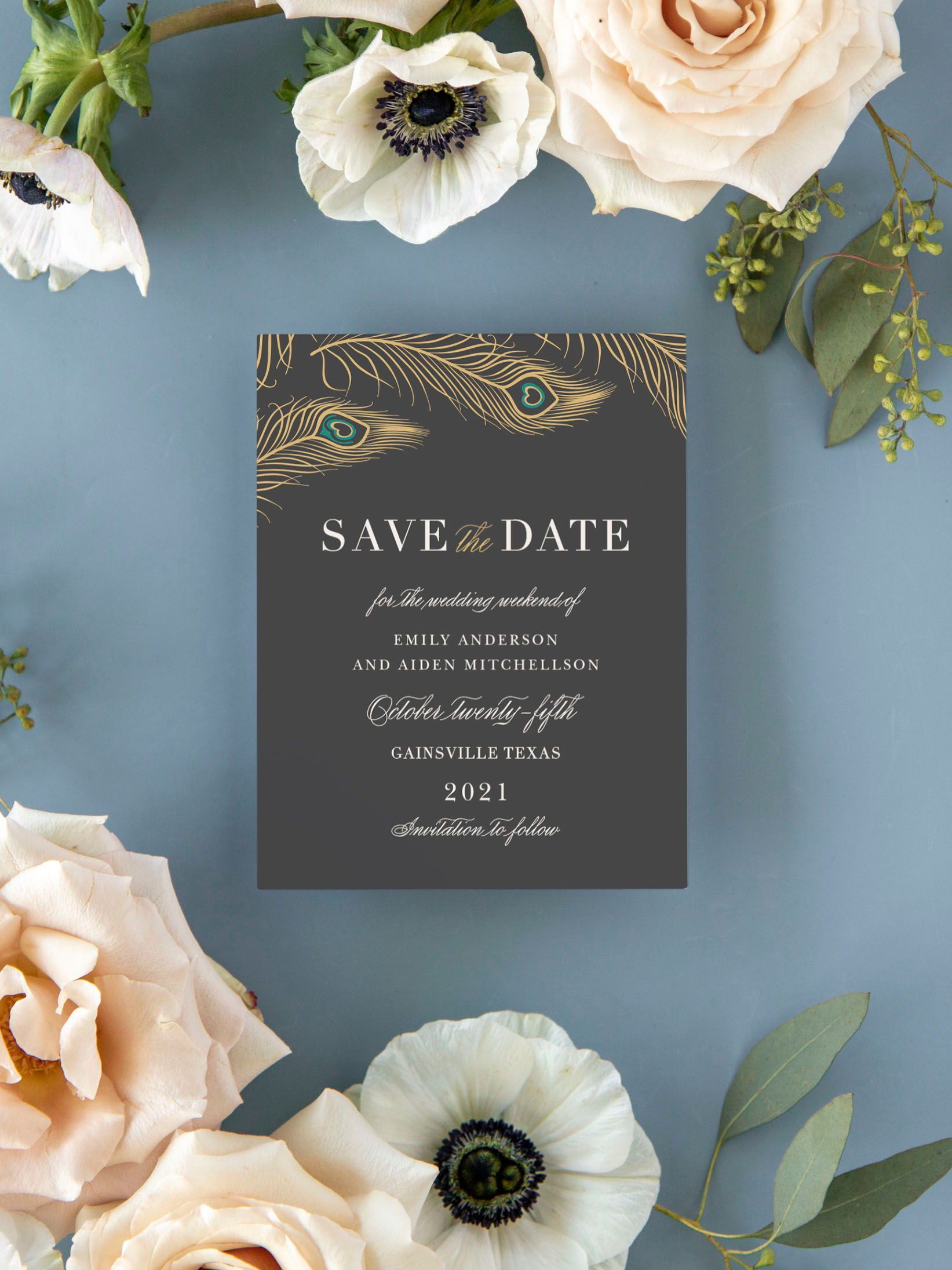 Foil- Foil cards are available in gold, silver, and rose gold. Customers can choose flat or raised foil on all of Basic Invite’s foil designs.